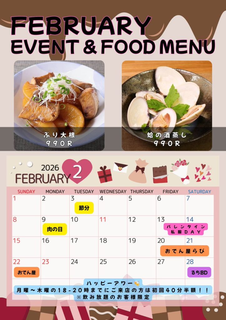 そんな2月は月曜日から木曜日にハッピーアワーやってます🍺